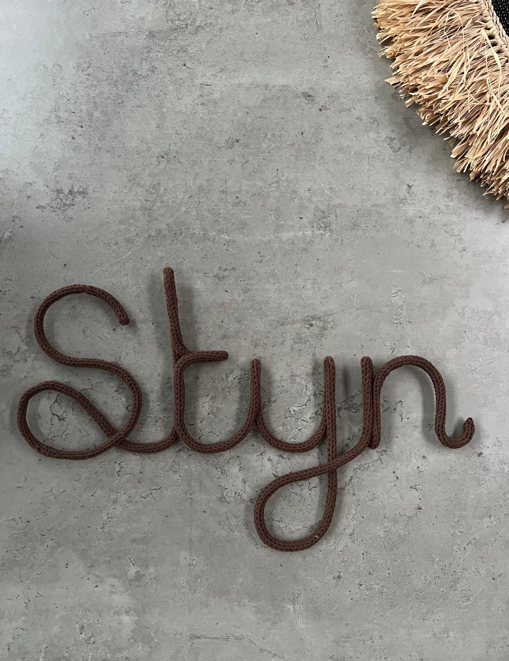 Deze geweldige naam is gemaakt van 100% katoengaren en is perfect als wanddecoratie of staand op een plankje. De naam is ook heel leuk om hem ergens te laten hangen, zoals aan de kamerdeur van jouw Bofkontje. Dit kan je bijvoorbeeld doen met visdraad.
