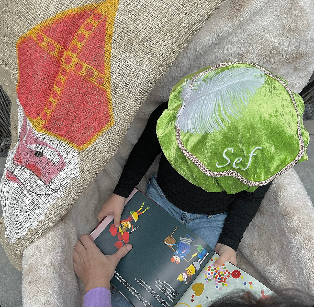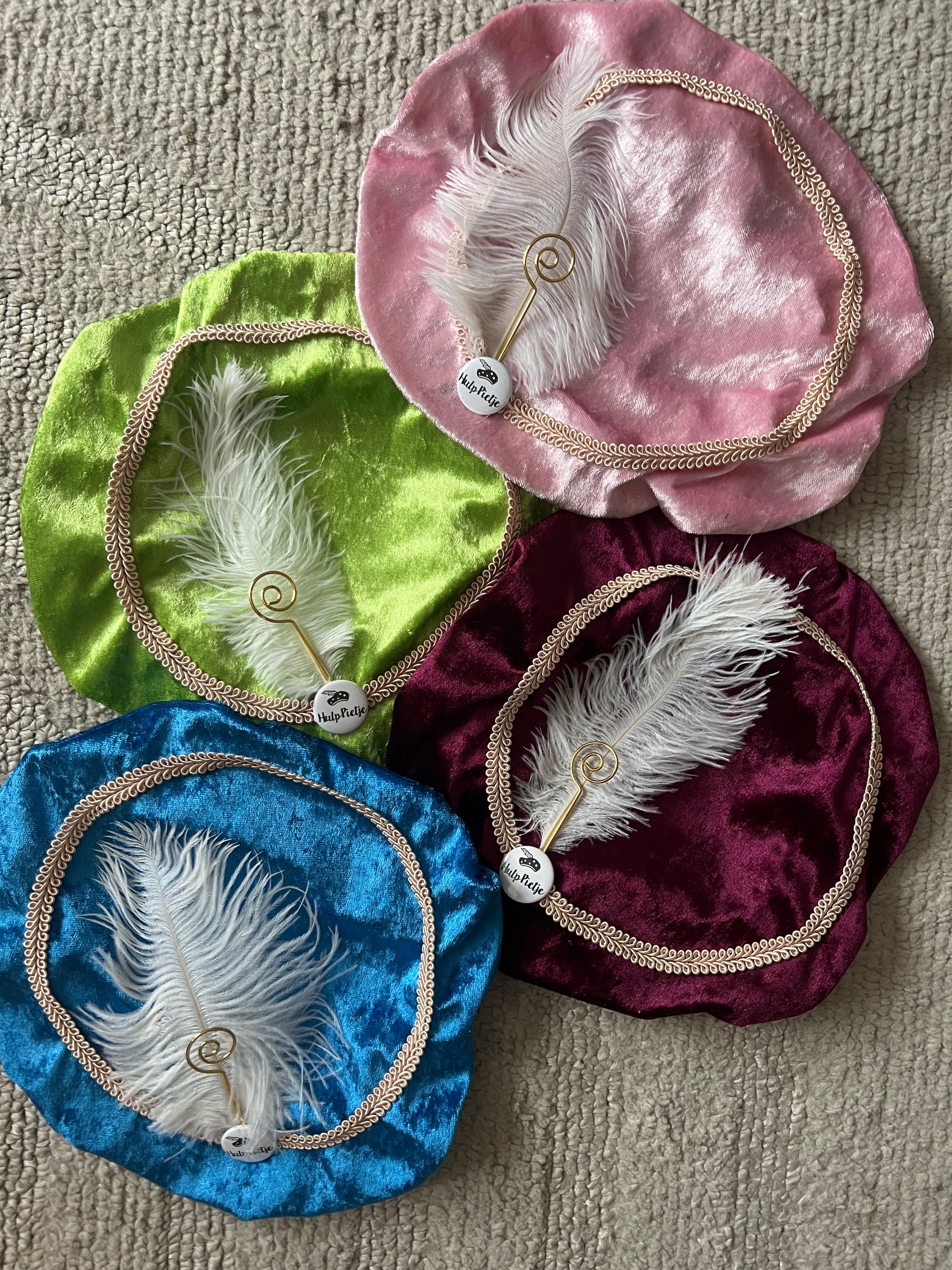 Elk pietenmutsje is voorzien van een witte veer, mini staf en een button met de tekst “hulppietje”.